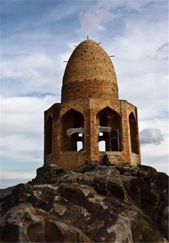 بر تختگاهی دایره مانند از سنگ لاشه بهقطر تقریبی ١٠ متر و بلندی ٨٠ سانتیمتر الی ٣ متر بر قله کوهی که بلندی آن از سطح اطراف در حدود ٢ هزار متر است، گنبدی آجری و ٨ ضلعی بنا نهادهاند .آنچنانکه لبه پرتگاه تا جرزهای گنبد در حدود ١ متر فاصله دارد و این بنا که از آجر و ملات گچ ساخته شده، ابعاد هر یک از اضلاع هشتضلعی آن ٣ و قطر پی ١،٨ متر است.